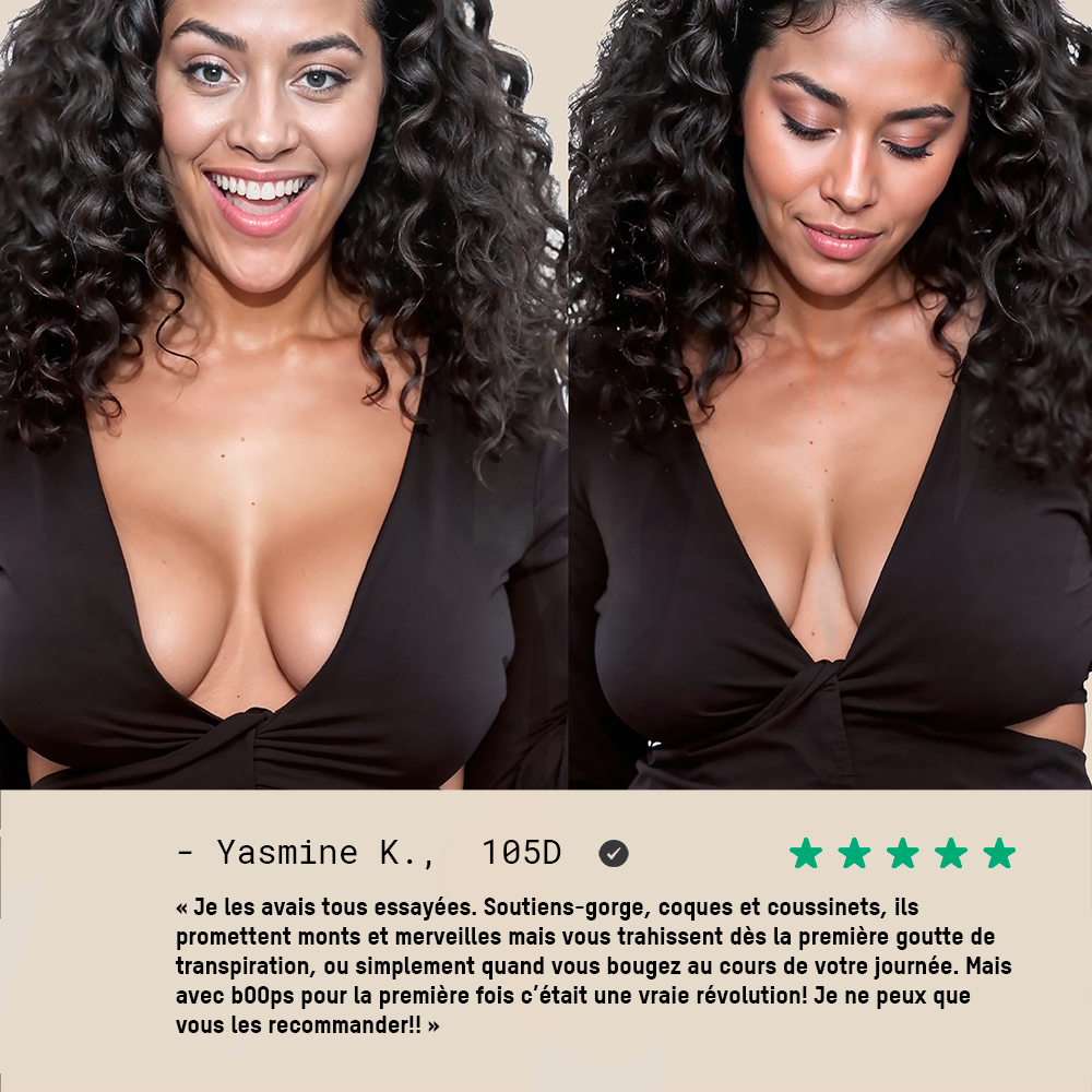 Absolument ! Boops sont spécifiquement conçues pour fonctionner magnifiquement pour TOUTES les tailles de poitrine. Pour les petites poitrines, elles offrent une mise en valeur subtile sans le volume excessif qui rend les autres coussinets peu naturelles. Notre technologie Aero-Lift assure un contour parfait qui fonctionne avec votre forme naturelle en toute discrétion sansd bords visibles.